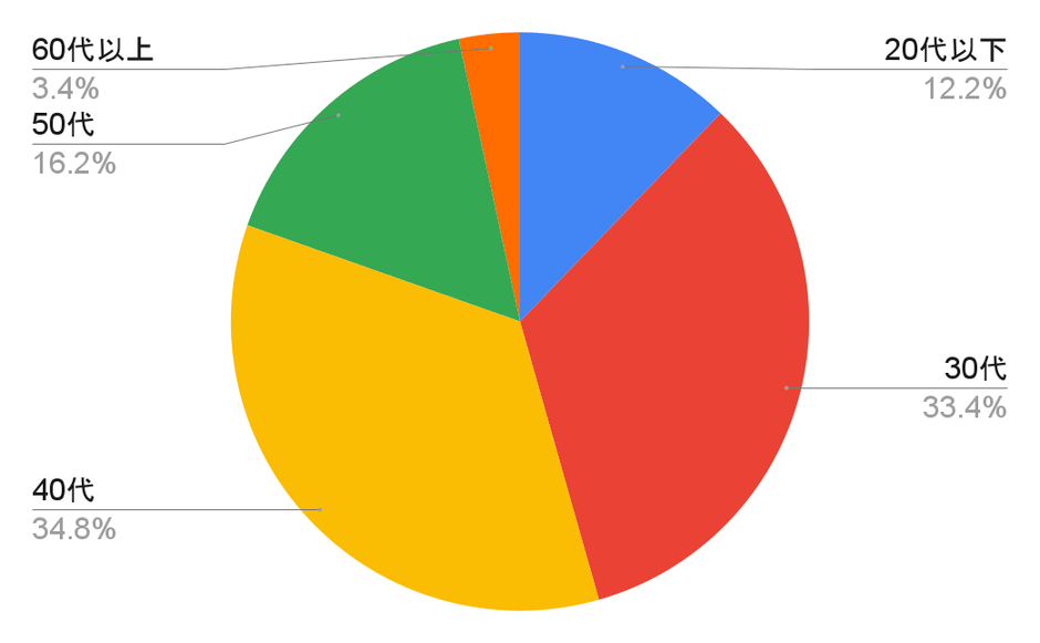 年齢層は30-40代が68%を占め、働き盛り世代の実態が反映されています。