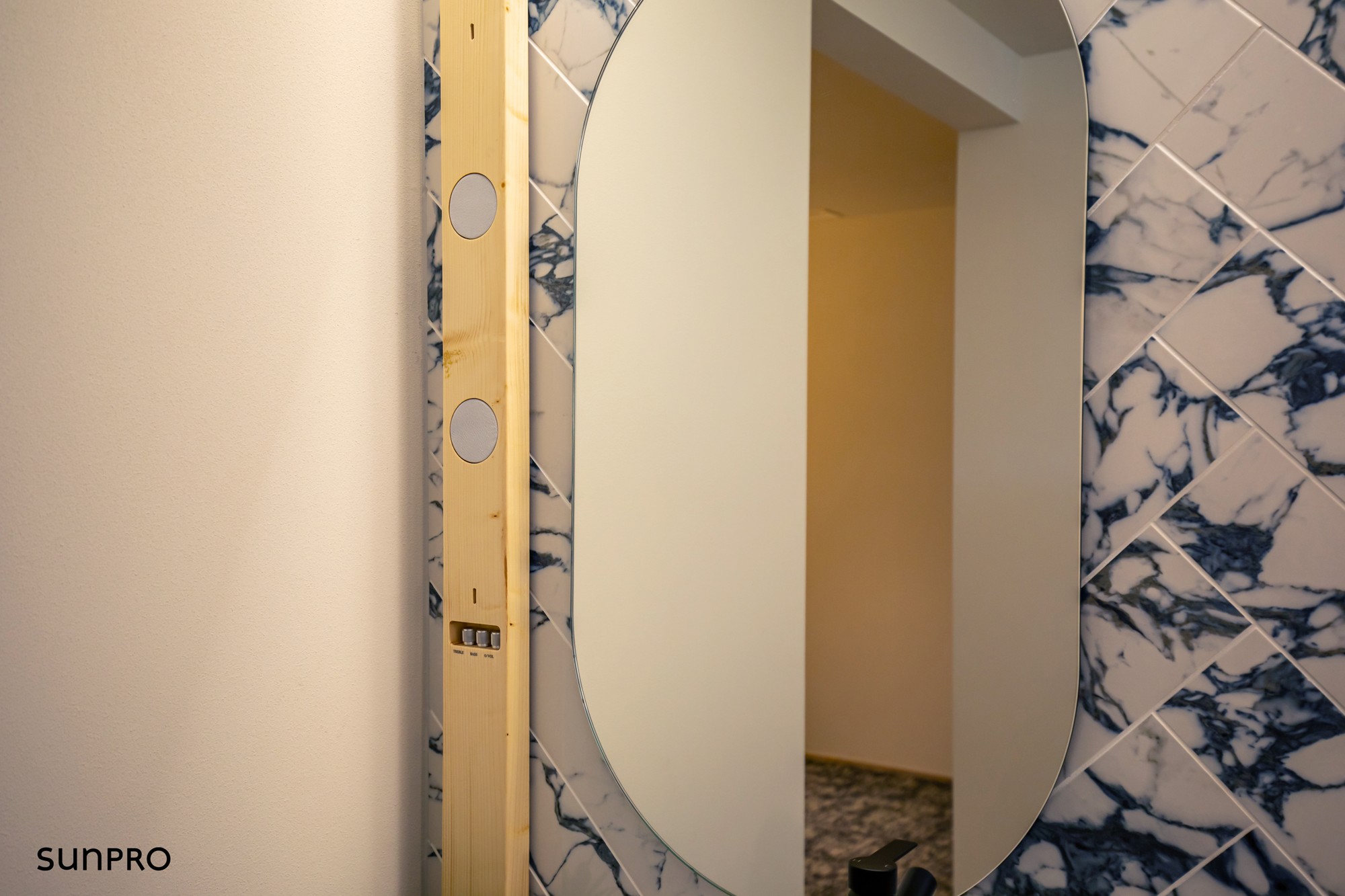 幅約9cm、厚みわずか4cmの超薄型設計(特許出願中)により、スクリーンの真横に設置可能。プロジェクター本体からの再生で起こりがちな「音の発生位置と映像位置の違和感」を解消し、没入感の高いホームシアター環境を提供します。