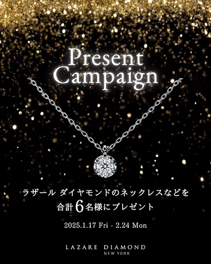 ブライダルジュエリーの企画・販売を行うプリモグローバルホールディングス株式会社(本社:東京都中央区、代表取締役社長:澤野 直樹)が運営するダイヤモンドジュエリー「ラザール ダイヤモンド ブティック」では、2025年1月17日(金)~2月24日(月)の期間、公式Instagramにて『フォロー&投稿プレゼントキャンペーン』を開催いたします。
