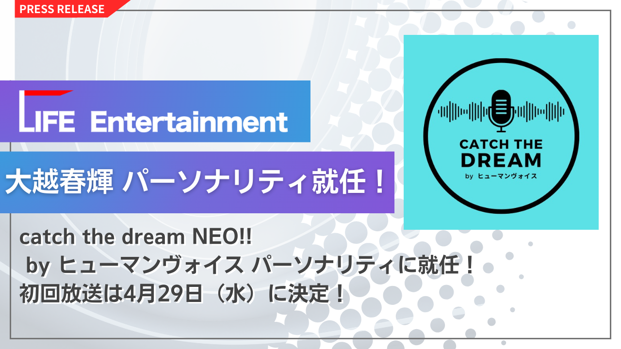 LIFE Entertainment代表 大越春輝 渋谷クロスFM 「catch the dream NEO!! byヒューマンヴォイス」パーソナリティに就任 初回放送は4月29日(水)に決定!