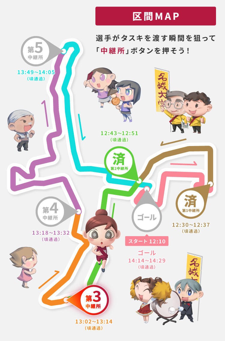 投稿いただいた応援メッセージは、サイト内の沿道キャラクターから吹き出しで表示され、選手たちに力を与えます。