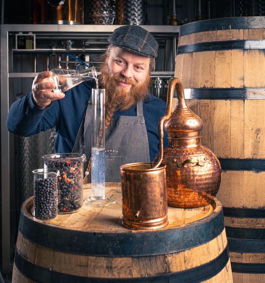 キーボタニカルである北極圏に自生するビルベリー(ブルーベリーの一種)など、11種類の天然ボタニカルは地元調達することにこだわり、その一部は蒸留所近くの森で育てられています。2年の開発期間、1,200回を超える試作を経て考案した独自のノンチルフィルタリング製法により、ビルベリー本来の味わいと豊かな香りを残すことに成功しました。合成着色料や合成添加物を一切使用しておらず、数々の世界的なコンペティションで、2018年「スピリッツオブザイヤー」や2022年「ダブルゴールド」等の輝かしい賞を受けています。製品のラベルやパッケージに使用されている原料は、フィンランドで持続的に管理された森林の木材を使用しており、1本伐採するごとに4本の苗木を植えるというサスティナブルな取り組みも行っています。