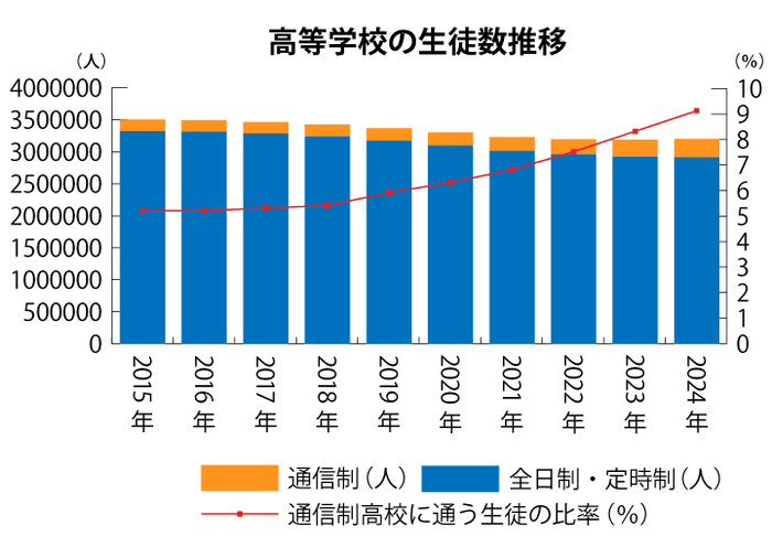 ここ十数年、通信制高校は個性と多様性を育む学びの環境として、常にポジティブな変化を続けてきました。その結果、たくさんの可能性を提示できる教育機関に進化し、2024年8月時点で通信制高校の生徒数は過去最多の29万人を突破しました。(※1)