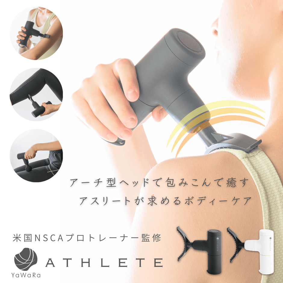 YaWaRa ATHLETEは『ランニングやスポーツをライフワークにしているアスリートが短時間で効率的にケアができること』をテーマに企画開発した筋膜リリースガンです。