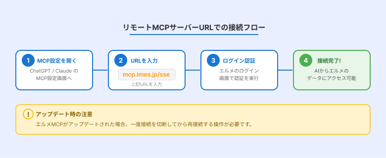エルメとAIサービスをMCP接続する方法は、以下の2つがあります。