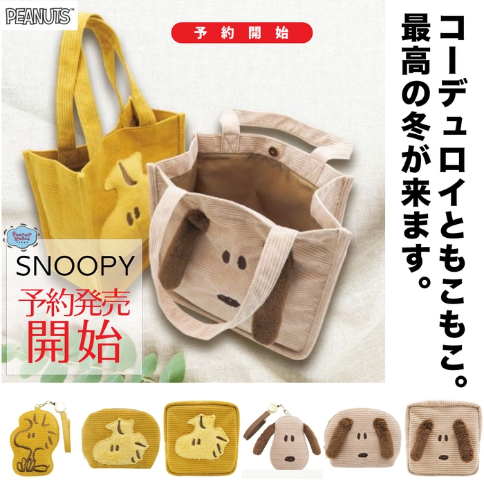 「速報 予約開始」スヌーピー新シリーズは秋冬にピッタリなコーデュロイ素材♪ほっこりカラーのバッグやポーチが勢揃い