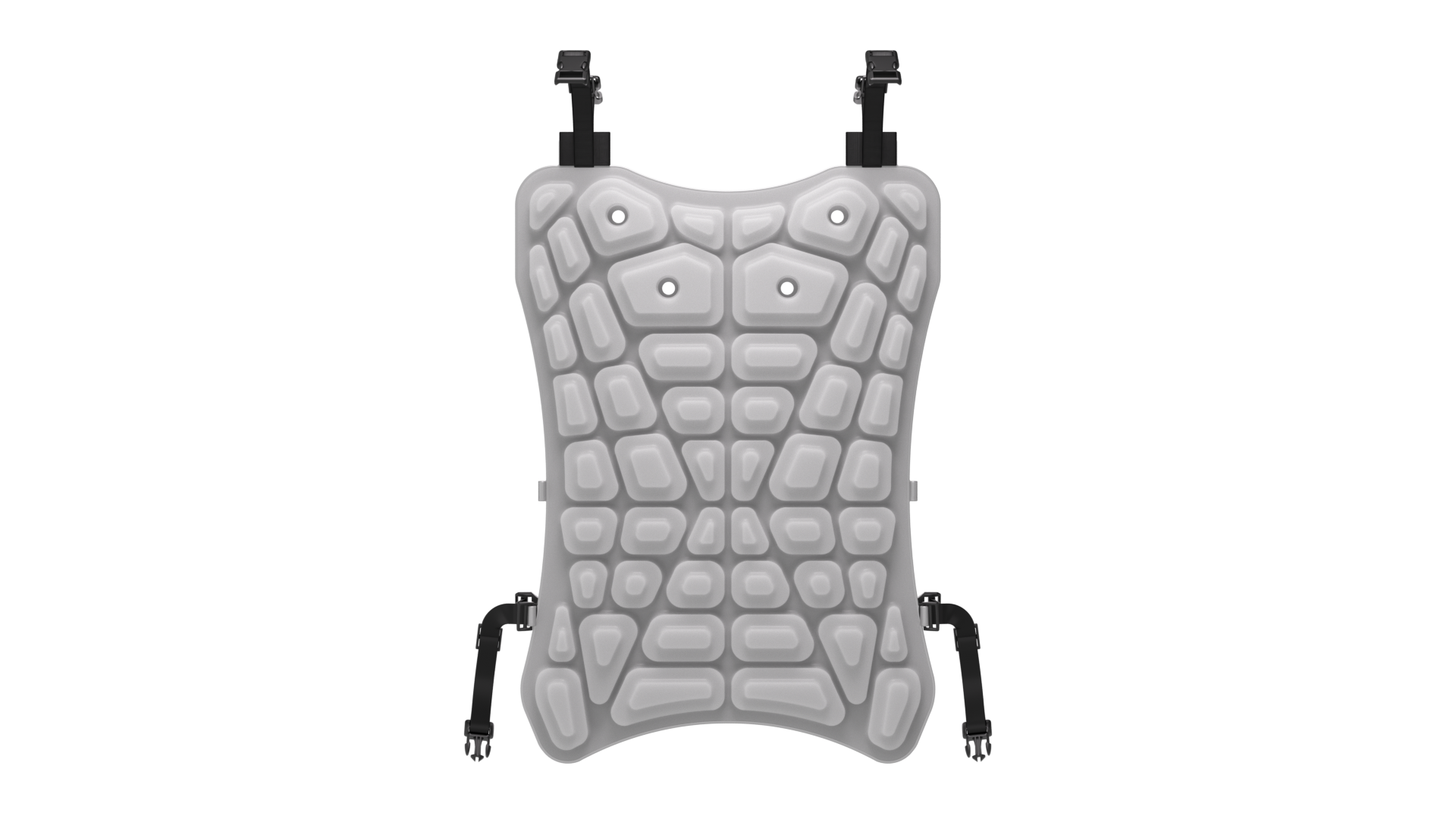 リュックのバック面に装着して背中を冷やすPCM搭載パッド。客先の室内が28℃以下であれば再凍結も期待できる実用的な設計です。
