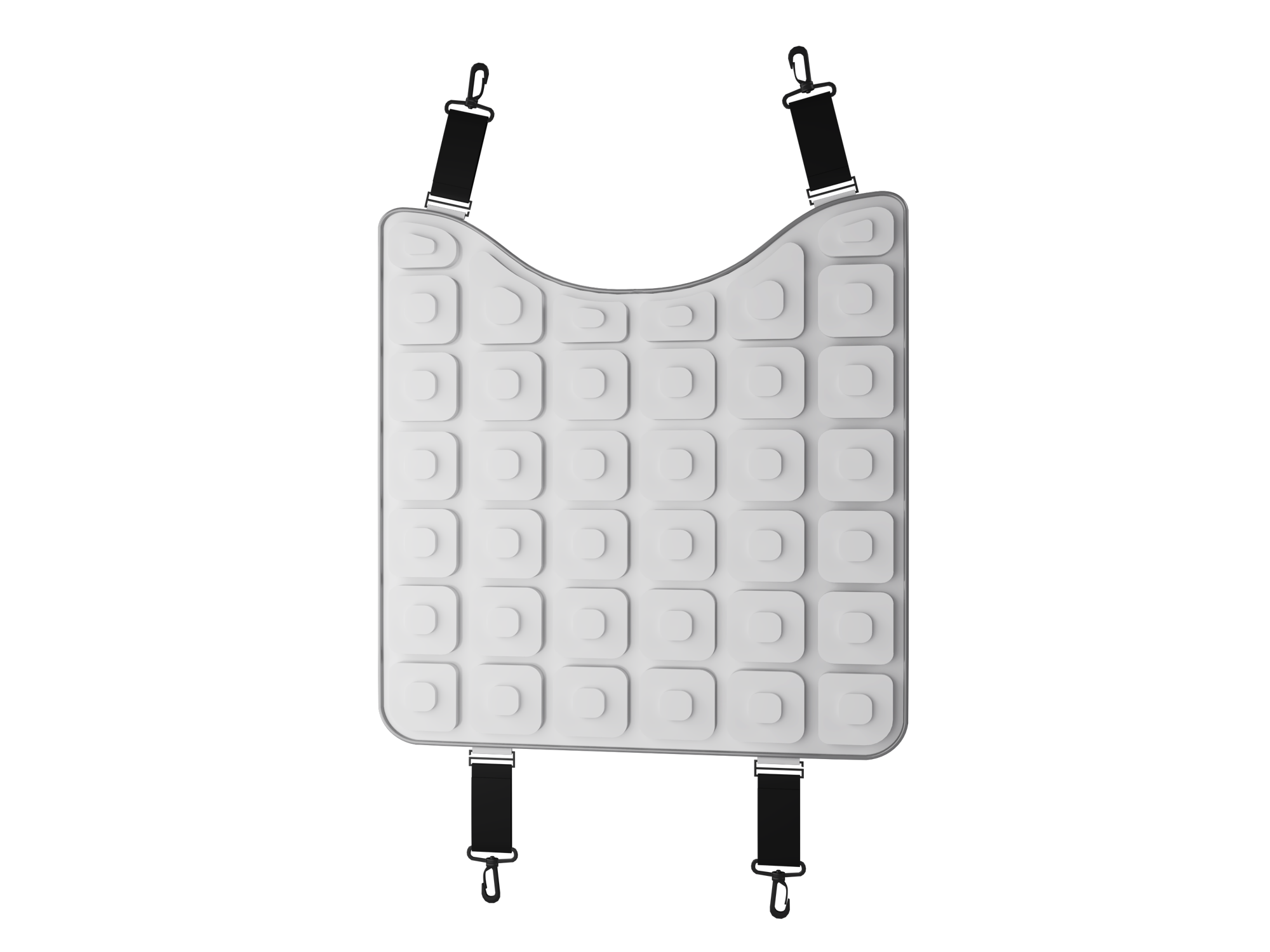子どもの通学中の背中の蒸れと暑さを継続的に軽減するPCM搭載パッド。ランドセルだけでなく女性の小さめバッグにも対応できるサイズ設計です。