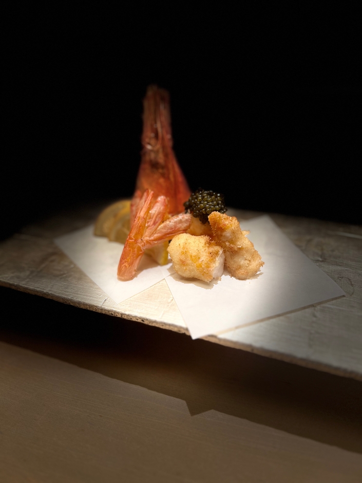 店内はわずか5席のカウンターと4名様の個室1部屋。目の前で職人が一品ずつ揚げ上げる様子をご覧いただける、臨場感ある特別なひとときをお楽しみいただけます。国内外のゲストに向けた英語対応や、特別なご会食・接待にも最適です。