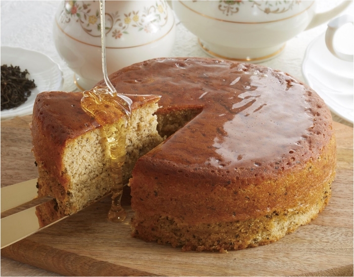 華やかで香り高い箱根山麓紅茶の茶葉を生地に練りこみ発酵バターを使用することで香り豊かに、しっとりふわふわに焼き上げました。仕上げに甘みと旨味がふわっと香るはちみつナパージュをかけた、上品に紅茶が香るバターケーキです。