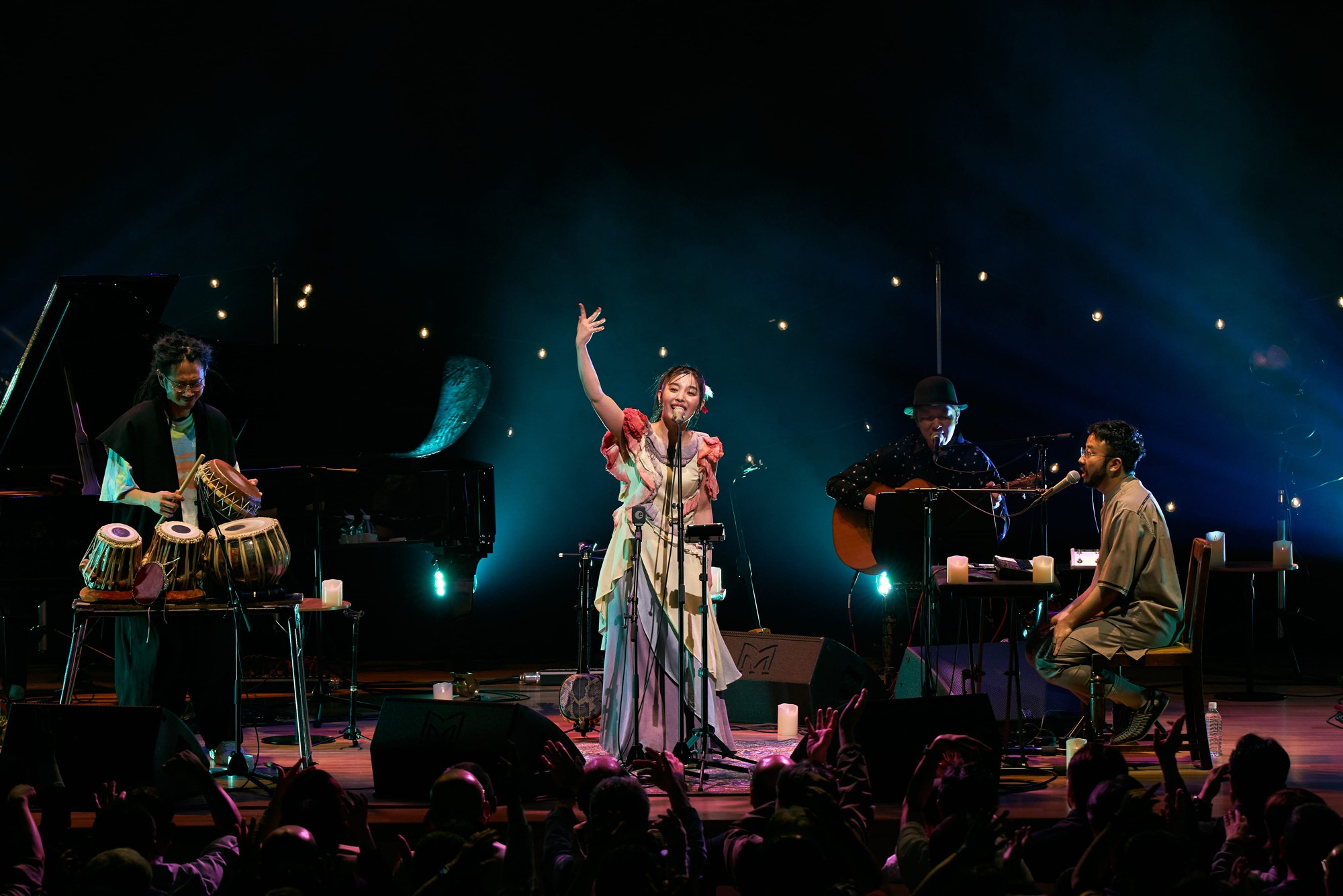 さらにアルバム『ウタアシビ』収録楽曲の『息吹』や『おかえり』の作曲や他3曲のアレンジも手がけたピアノバンドRyu MatsuyamaのRyuと「HOKORASHA (feat. Ngaiire)」にパーカッションで参加したJacksonも登場しツアーファイナルを盛り上げた。