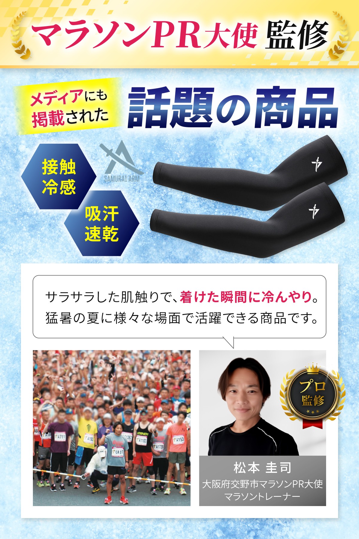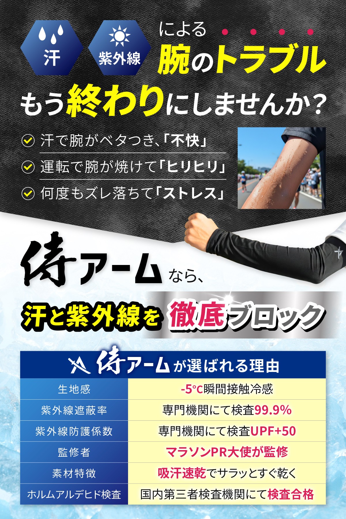 【2026年 猛暑対策!】体感温度-5°Cの衝撃!マラソンPR大使が監修した、真夏の「腕」を鉄壁ガードする瞬間冷却のメンズ用アームカバー『侍アーム』を「Harewith」より発売