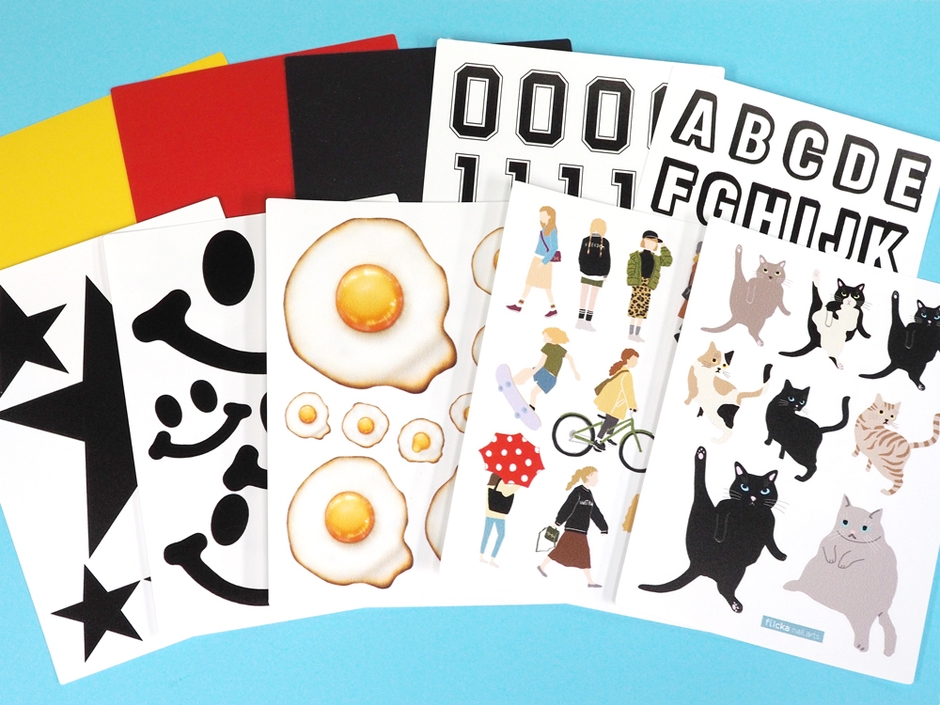 アルファベット(FD-ALP-101)、目玉焼き(FD-FEG-101)、flica nail artsプロデュースCATS(FD-FLI-101)、flica nail artsプロデュースGIRLS(FD-FLI-102)、ナンバー(FD-NUM-101)、スマイル(FD-SMI-101)、星 ブラック(FD-STR-101)