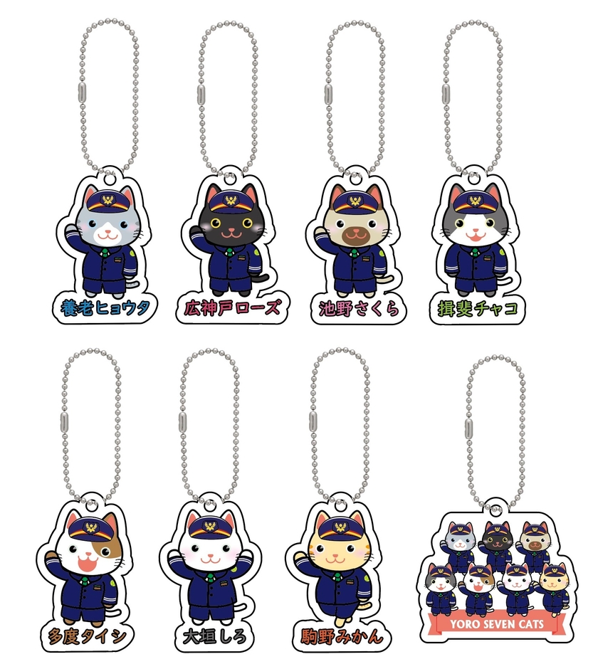 養老鉄道では、8月に愛称が決定したねこキャラクター「YORO SEVEN CATS」のキーホルダーを2022年11月1日(火)から、ようてつガチャで発売します。詳細は下記のとおりです。
