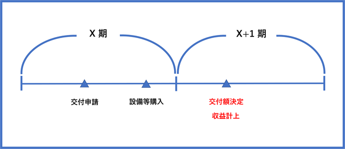 設備等の購入時期と交付額決定時期の事業年度が異なる場合の収益計上時期は交付額決定の時期になるので注意が必要です。
