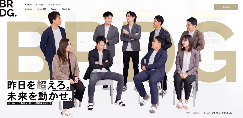 2025年3月24日、合同会社BRDG.はホームページをリニューアルし、当社のミッションやビジョン、事業内容が伝わりやすいように改善しました。