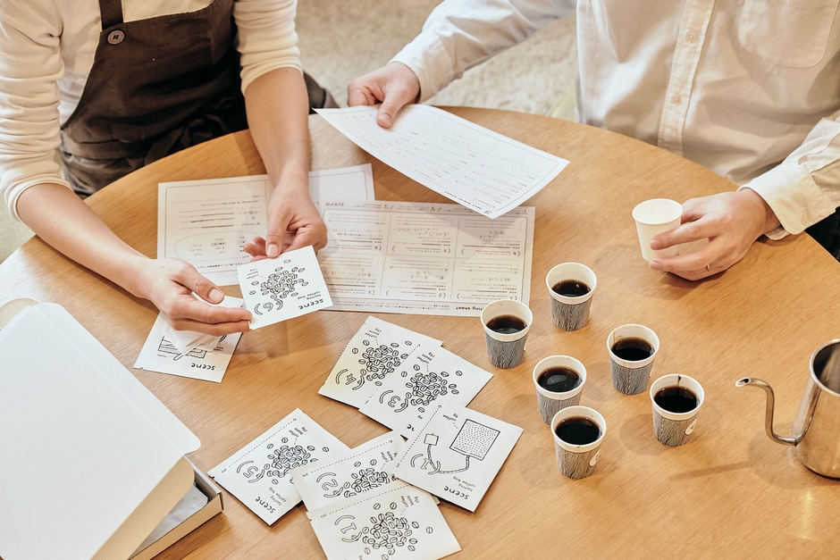 つまり、最高のコーヒーとは想いの込もったその人だけのものだと気付き、誰でも自分だけのコーヒーを作ることができれば、みなさんに最高のコーヒーを楽しんでいただけるのではと考え、商品開発をはじめました。コロナ禍で開催できなくなったブレンド作りのワークショップのノウハウを応用し、ご自宅で誰でも簡単にできるように作られたカスタムブレンドキット『scene』は、あなただけの特別なコーヒーを提供します。