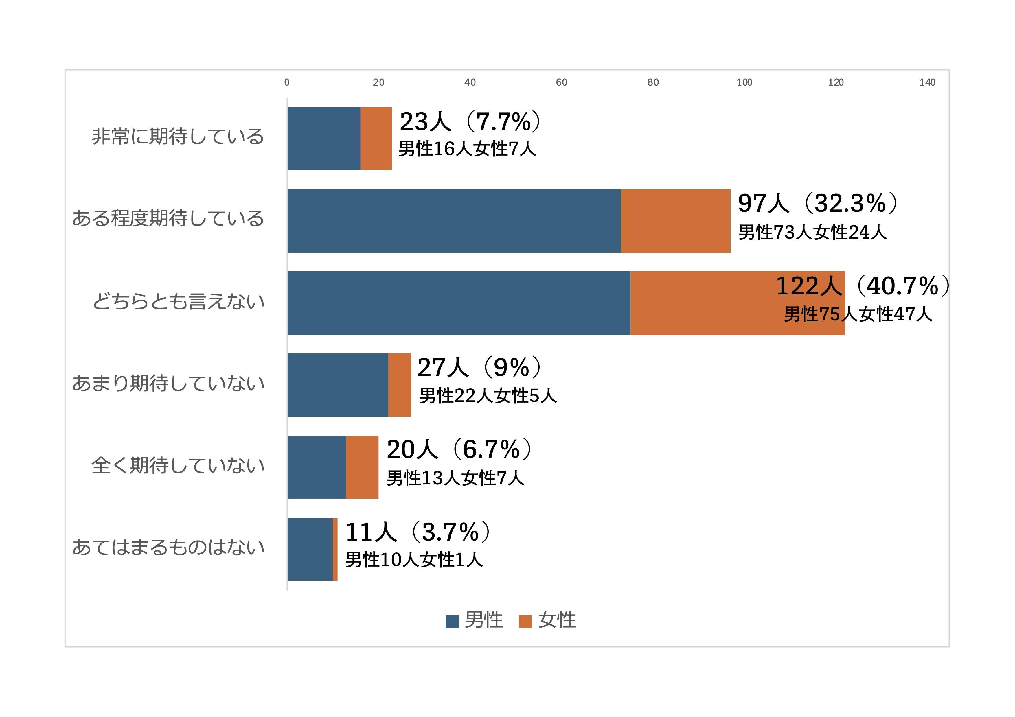 「どちらともいえない」が41%、「ある程度期待している」が32%で上位を占めた。