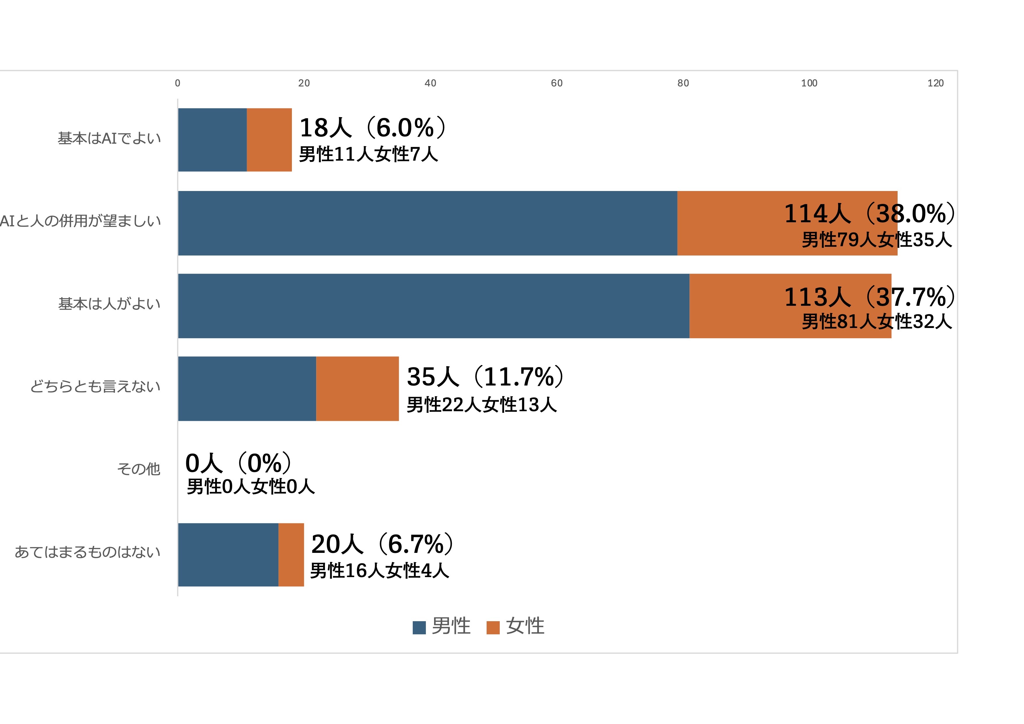 「基本は人が良い」と「AIと人の併用が望ましい」が38%と上位を占めた。