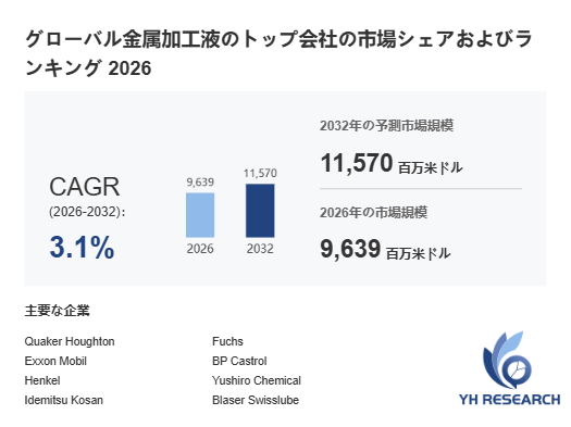 上記の図表/データは、YHResearchの最新レポート「グローバル金属加工液のトップ会社の市場シェアおよびランキング 2026」から引用されています。