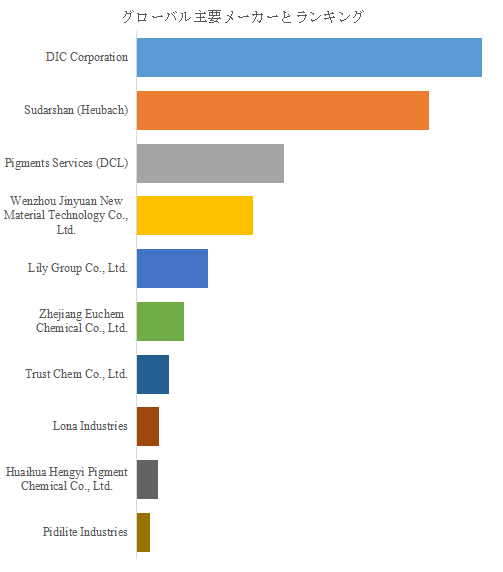 LP Informationのトップ企業研究センターによると、キナクリドン顔料の製造市場は高い集中度を持ち、主要企業としてDIC Corporation、Sudarshan(Heubach)、Pigments Services(DCL)が中心的な役割を果たしている。2025年には、これらトップ3企業が世界市場の約65.0%のシェアを占めており、研究開発力・供給ネットワーク・ブランド信頼性において明確な競争優位を築いている。DIC Corporationは結晶制御技術を基盤に多様なカラーバリエーションを展開し、耐光性・分散性・環境適合性を兼ね備えた製品を供給している。SudarshanはHeubachグループとの統合によりグローバル供給体制を再編し、新興市場におけるプレゼンスを強化している。一方、Pigments Services(DCL)は高付加価値用途に特化し、欧米市場での品質信頼性を確立している。このように、キナクリドン顔料市場は少数のリーディングカンパニーによる技術主導型競争の構造を持つことが特徴である。