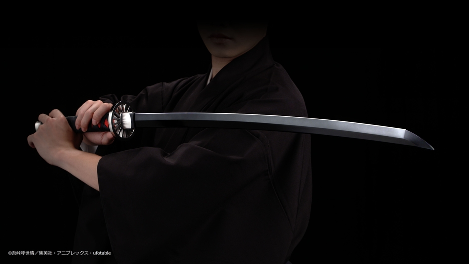 商品化にあたり、アニメ映像や設定画を検証し、劇中に登場する約1/1サイズである全長約880mmで公式初の立体化。さらに、約1/1サイズで立体化した時に必要な質感、熟練の塗装技術で仕上げる「漆黒」の刃なども再現することで、一層の「本物感」を生み出しています。