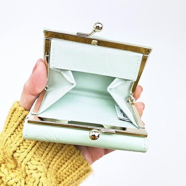三つ折りのお財布ですので、コンパクトで使い勝手抜群です。これなら小さめのバッグにもはいりそうかも。コンパクトながら、小銭入れががま口タイプで広々としており、小銭も出し入れしやすいですよ。バッグがかさばらなくてうれしいかも。サイズ:8.5cm×9.8cm×3cm 素材:合成皮革、ポリエステル