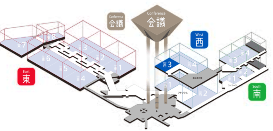 ・ 「西展示棟 / West Hall」の表示に従って進む