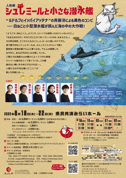 人形劇団ひとみ座(神奈川県川崎市中原区)は、8月18日(木)~ 22日(月)に、県民共済 みらいホール(横浜・桜木町)にて『シュレミールと小さな潜水艦』を上演します。6月22日(水)10時からチケット予約を開始します。