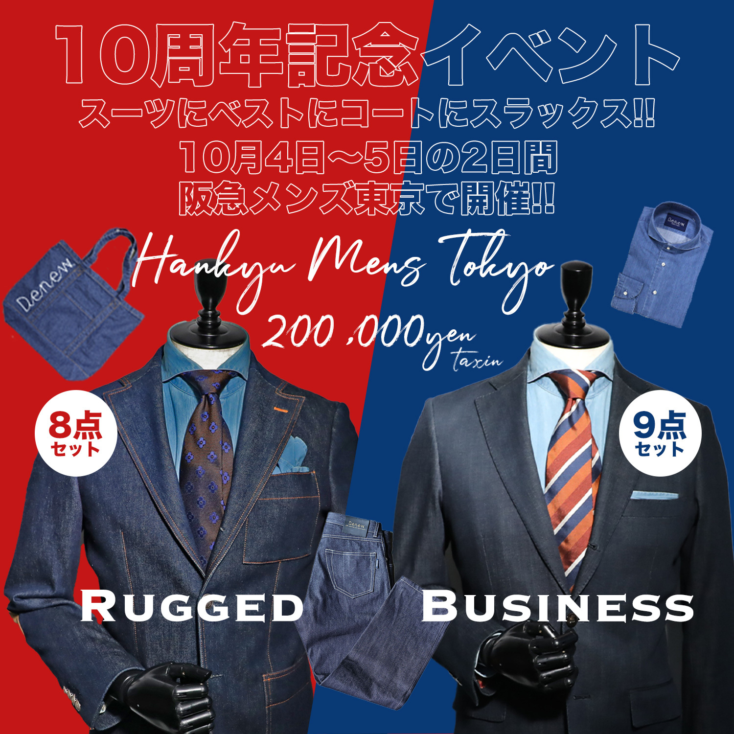 デニムスーツ専門店Denew、ポップアップショップを 阪急メンズ東京で開催! 2025年10月4~5日の2日間で限定ラッキーバッグ販売!