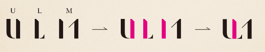 「UNIVERSAL LANGUAGE MEASURE’S」の頭文字であるULMを並べ、組み合わせて形作ったロゴマーク。
