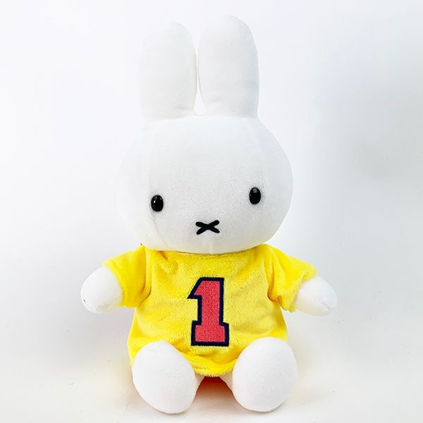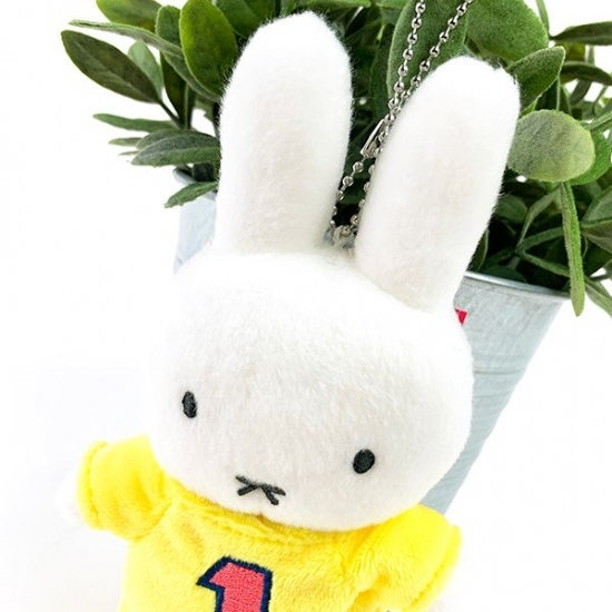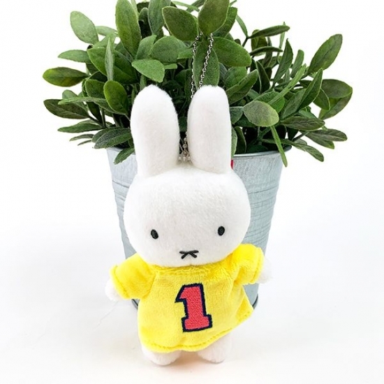 こちらがその、スポーツシリーズのぬいぐるみです。イエローカラーに1がデザインされたお洋服のミッフィー♡アクティブな雰囲気がキュートですね。
