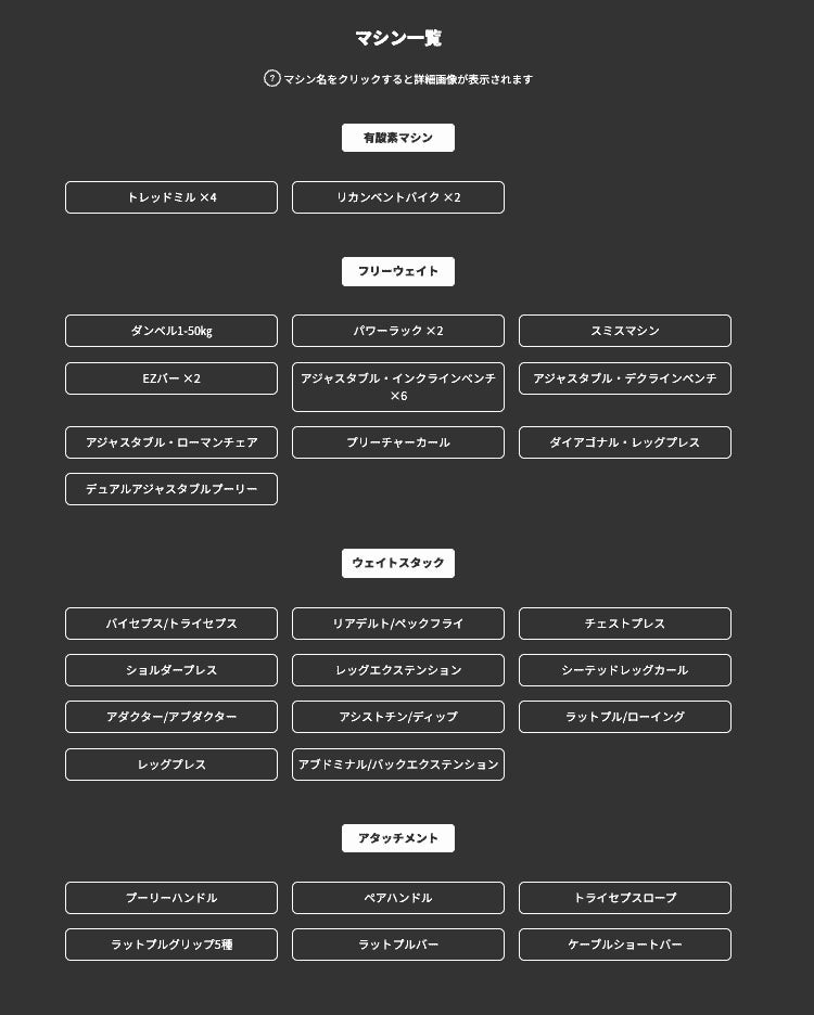 - マシン総数30台以上!コンパクトながら充実のラインナップ
