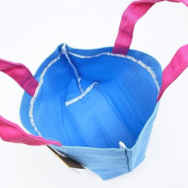 弁当箱を入れるのにぴったりなサイズ感です。サブバッグとしても、ちょっとしたお出かけに、おサイフやスマホ、カギなどの小物を入れるのにちょうどいいサイズ感です。サイズ:18.5cm×29cm×11.6cm 素材:本体:綿100%、持ち手:ポリエステル100%
