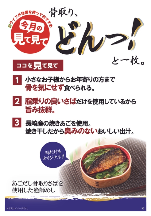 おさかなを気軽に召し上がれることから需要が高まっている「骨取り魚」を、ライフの水産売り場で人気の「漁師めし」に使用して、さらに即食・簡便ニーズにお応えしたいと思い、開発いたしました。脂の乗ったさばをどんっ!と一枚使用しているので食べ応えがあるのはもちろん、骨がないので非常に食べやすくお子様やシニア層の方にも安心してお召し上がりいただけます。ぜひお試しください!