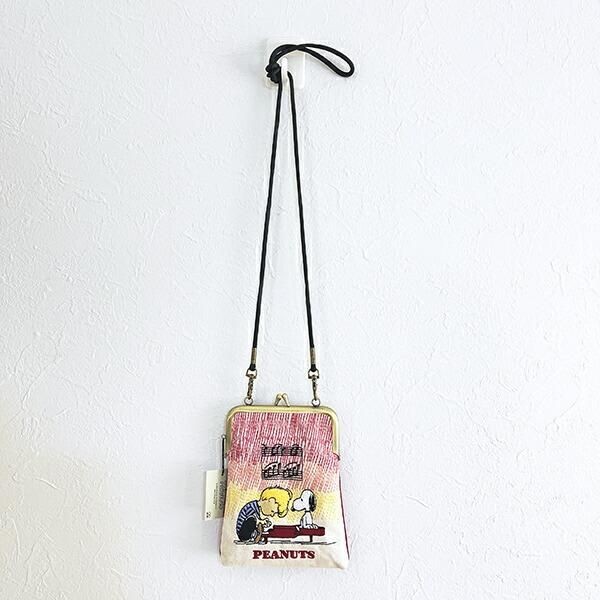 スヌーピーの畳刺繡ガマ口ポーチ。細かい刺繍に高級感も感じさせるポーチです。