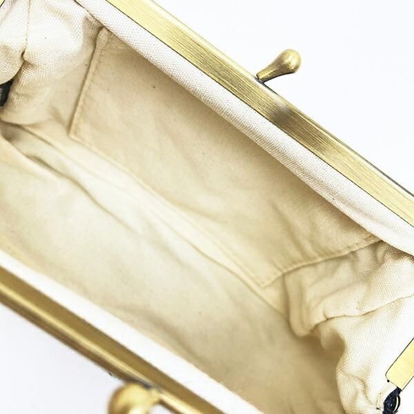横幅が広いので中身が取り出しやすいです。マチと大きく開くがま口なので、中身を出し入れしやすいのがとっても便利です。中には内ポケットがあるので細かいものを分けて収納できるのもうれしいポイントです。サイズ:14.5cm×20.5cm×6cm 素材:綿、スチール