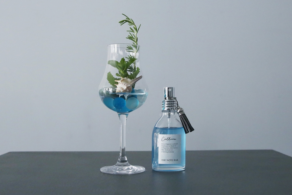 フルオーダーという利点を活かし、ミントなどのグリーン系のストレートな香りだけでなく、自分の好みにデザインした清涼感を感じられる香りを作れるのがTHE NOTE BARの魅力です。