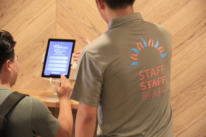 ご宿泊前までにお客様情報をご登録いただきますと、当日はフロントに設置のタブレット端末にQRコードをかざし(またはチェックインコード入力)、電子署名するだけでチェックインが完了。宿泊カードの記入や混雑するフロントでお待ちいただくことを避けられる便利なサービスです。