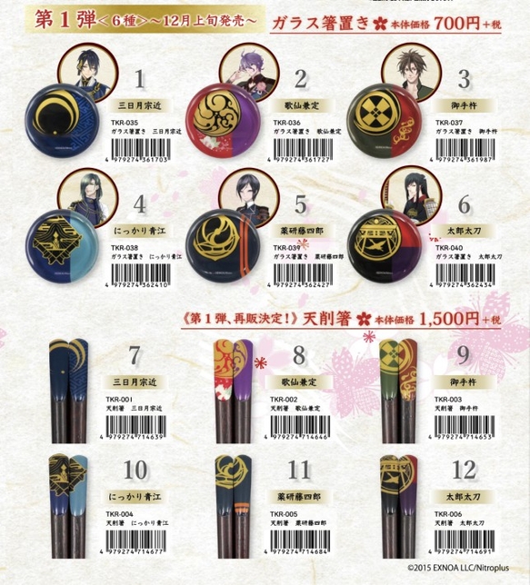 蜻蛉切様。お箸と重ねておいたら、世界が完成しそうです。こちらは700円(税別)。あれ、もしかして、プチプラ?とうらぶファンの間でのプレゼント交換に?合わせて予約が開始されます。