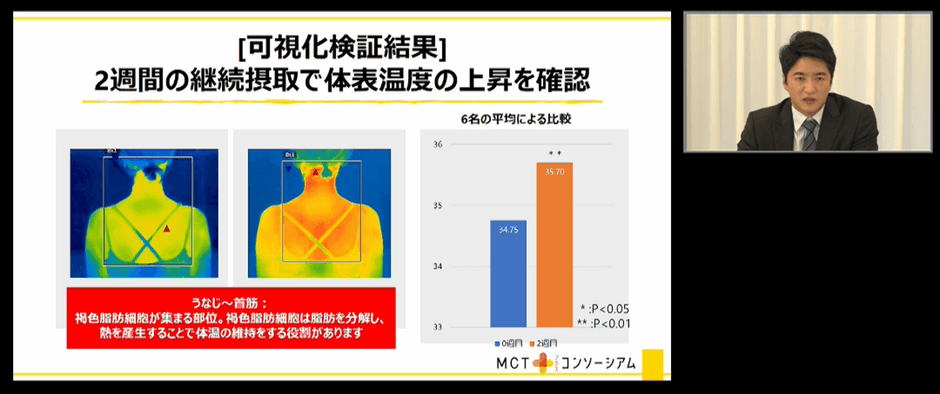 ・【最新研究】サーモグラフィで検証!MCTオイルの2週間継続摂取により全部位で体表温度上昇を確認。脂肪の蓄積を避けながら脂肪燃焼体質へ導いてくれることを示唆。