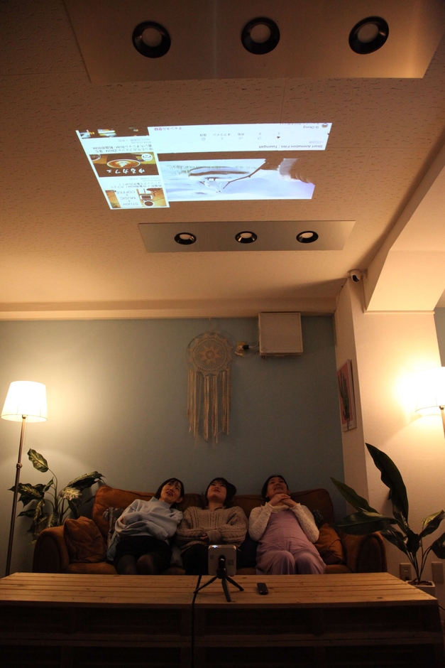 ・家でゴロゴロしながら、壁や天井でアニメ/YouTube三昧。