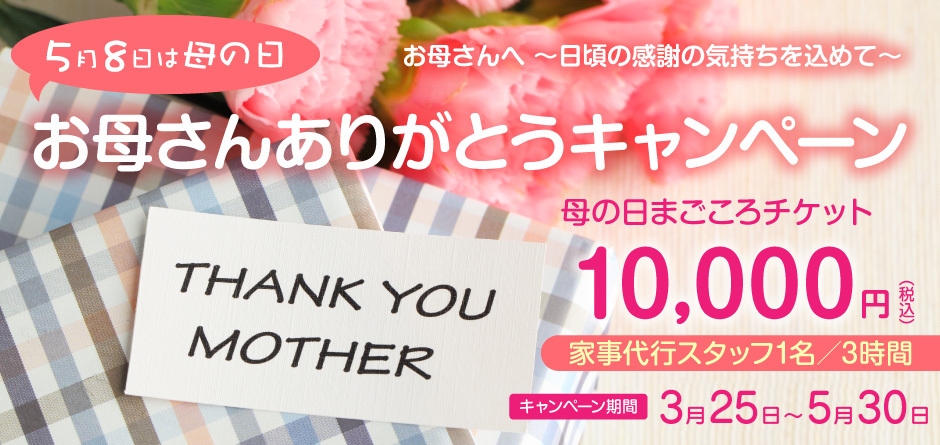 お母さんへ ~日頃の感謝の気持ちを込めて~ 家事代行サービス3時間10,000円