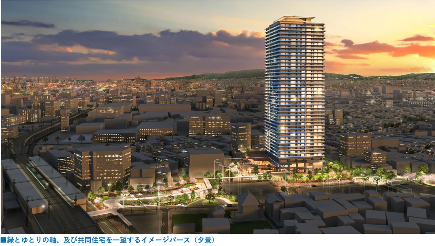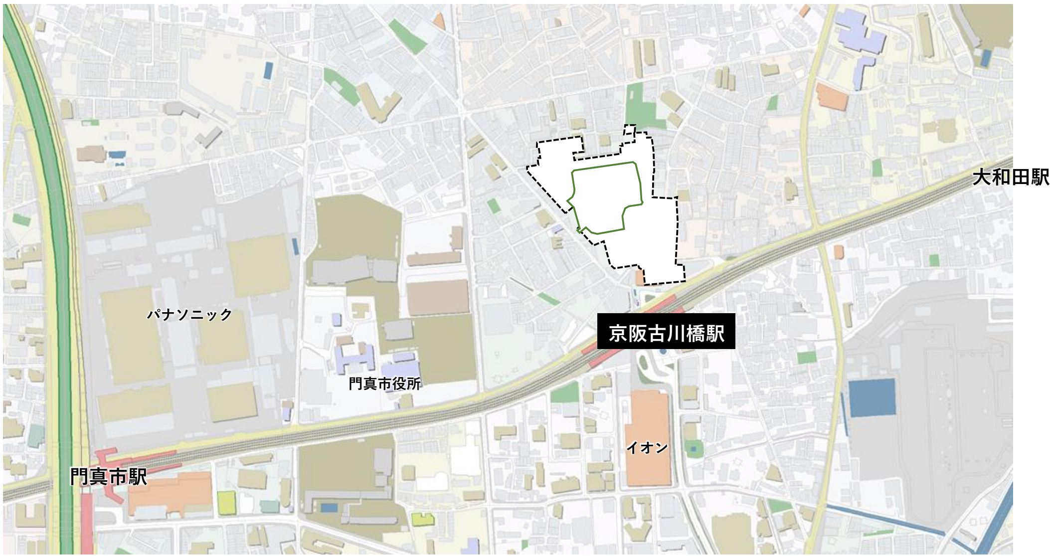 門真市は、京阪電車古川橋駅北側の門真市幸福東土地区画整理事業区域内(約2.8ha)において、門真市の顔となる中心拠点として、本事業用地及び(仮称)市立生涯学習複合施設(指定管理者候補者予定者カルチュア・コンビニエンス・クラブ(株))・交流広場をまちの核に位置づけ新たな賑わいが生まれる場となるよう、官民連携の手法によるまちづくりを推進しております。今回、当グループは本事業用地にて門真市初のタワー物件(地上41階、総戸数567戸)及び商業棟を計画し、地域に開放された広大な広場を設けることで新たな賑わいの創出に寄与致します。