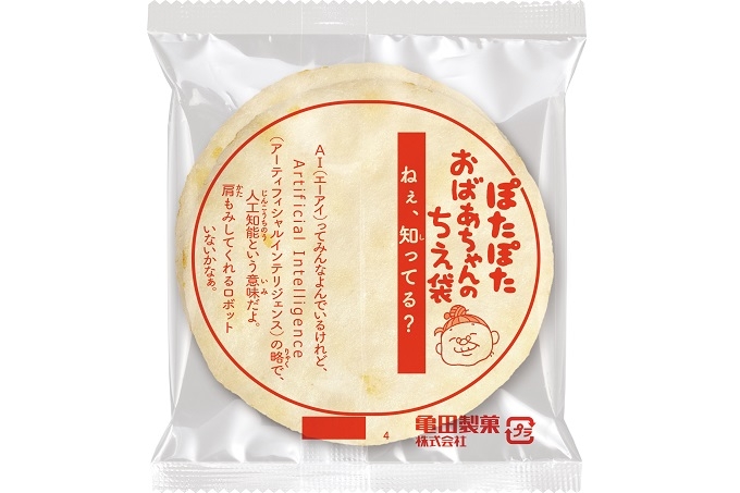 今回のパッケージリニューアルに合わせて「ぽたぽたおばあちゃんのちえ袋」もリニューアル。ヨシタケシンスケさん作画の「おばあちゃん」が昔ながらの知恵や現代のライフハック、なぞなぞクイズを紹介します。『ぽたぽた焼』を食べながら読んでほっこりしたり、なぞなぞの答えを親子で一緒に考えたりするなど、家族のコミュニケーションコンテンツとしてぜひお楽しみください。