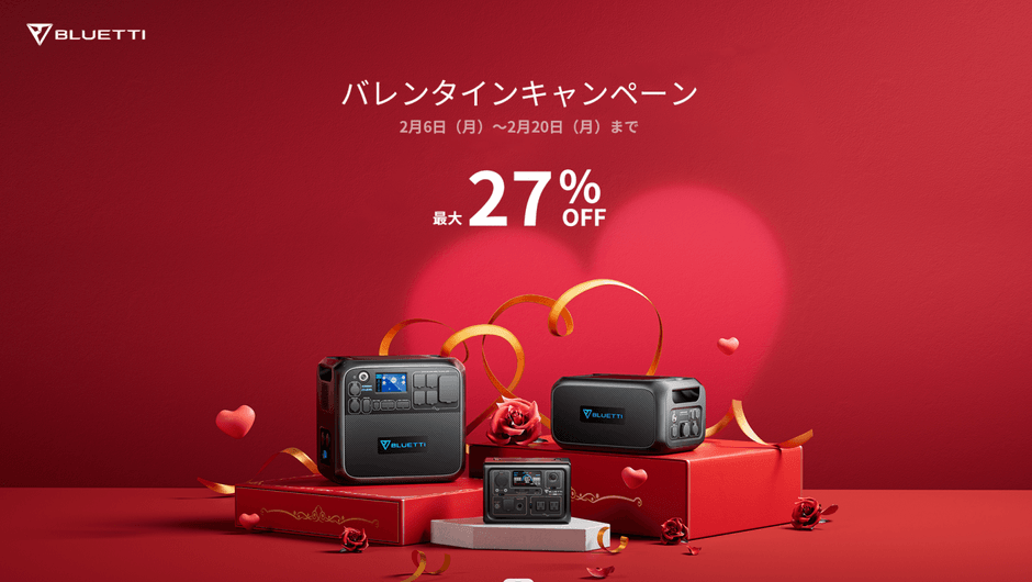 BLUETTI JAPAN株式会社(ブルーティ)は、バレンタインキャンペーンを2023年2月6日(月)から2月20日(月)まで実施します。