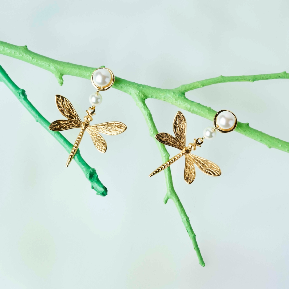 春の光のきらめきを、繊細でありながら強い光を放ち揺れるゴールドが表現。春を凝縮したようなピンクと透明感のあるやわらかなグリーン、ユニークでエレガントなトンボのモチーフを身に着ければ、まるで自然界の精霊たちが身近にいるかのような、ポジティブなパワーに包まれます。