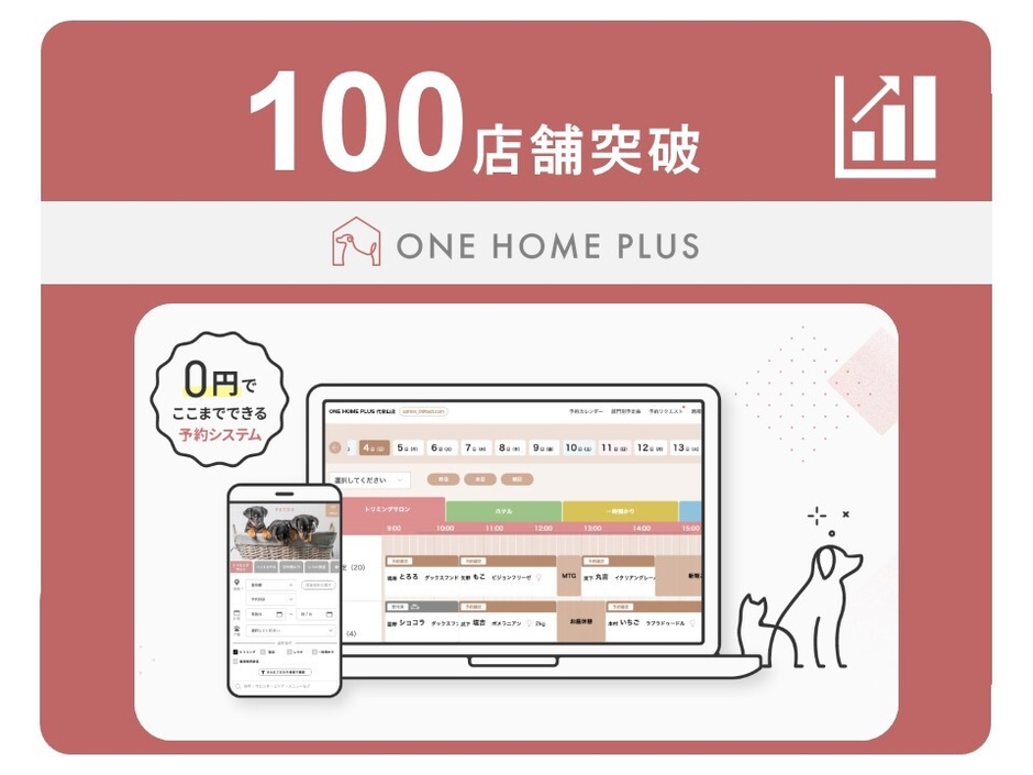 トリミングサロン向け 予約管理システム 「ONE HOME PLUS」導入数100店舗突破!!
