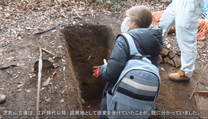 今回の動画は、発見品の紹介だけでなく、東京都教育庁の学芸員平田健さん、港区教育員会学芸員鈴木美和さん、当園サービスセンター長のコメントも交え、芝丸山古墳の成り立ちがよくわかる内容となっています。