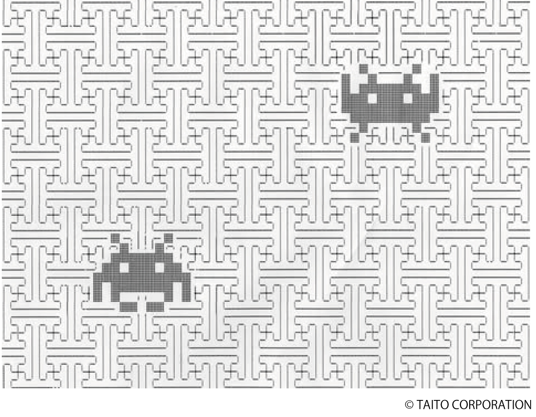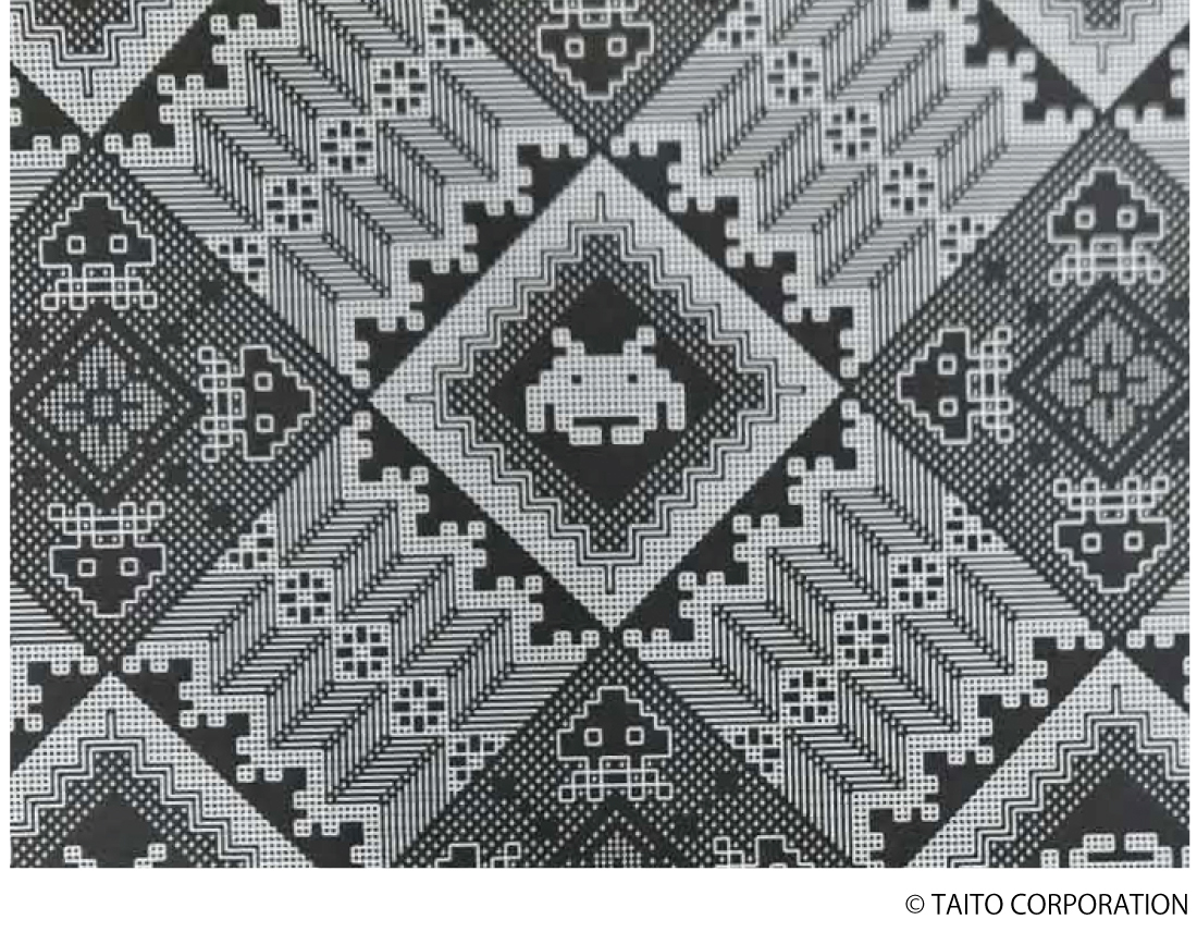 今回のデザインでは、スペースインベーダーを古典柄の中に自然に溶け込ませています。